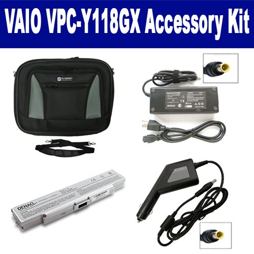 Sony VAIO VPC-Y118GX Laptop Accessory Kit includes the following items: 1) VGP-BPS2A/S Laptop Battery - High-Capacity (5200mAh 6-Cell Lithium-Ion) Replacement For Sony VGP-BPS2A/S Rechargeable Laptop Battery 2) SDA-3511 Laptop Adapter (16 Volt, 3.75 Amp, 60 Watt) 3) SDA-3561 Laptop DC Adapter / Car Charger (16 Volt, 3.75 Amp, 60 Watt) 4) SDC-32 Laptop 14" Black Case Soft Inner Material With Extra Pocket