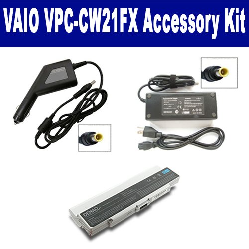 Sony VAIO VPC-CW21FX Laptop Accessory Kit includes the following items: 1) VGP-BPL2C/S Laptop Battery - High-Capacity (8800mAh 12-Cell Lithium-Ion) Replacement For Sony VGP-BPL2C/S Rechargeable Laptop Battery 2) SDA-3512 Laptop Adapter (19.5 Volt, 4.7 Amp, 90 Watt) 3) SDA-3562 Laptop DC Adapter / Car Charger (19.5 Volt, 4.7 Amp, 90 Watt)