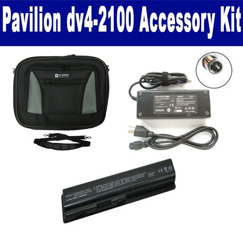 HP Pavilion dv4-2100 Laptop Accessory Kit includes the following items: 1) SDC-32 Laptop 14" Black Case Soft Inner Material With Extra Pocket 2) SDB-3330 Laptop Battery - Lithium-Ion - Ultra High Capacity Rechargeable (6 Cell - 4400 mAh - 49wh - 10.8 Volt) Replacement for HP DV4 Laptop Battery 3) SDA-3515 Laptop Adapter (19 Volt, 4.74 Amp, 90 Watt)