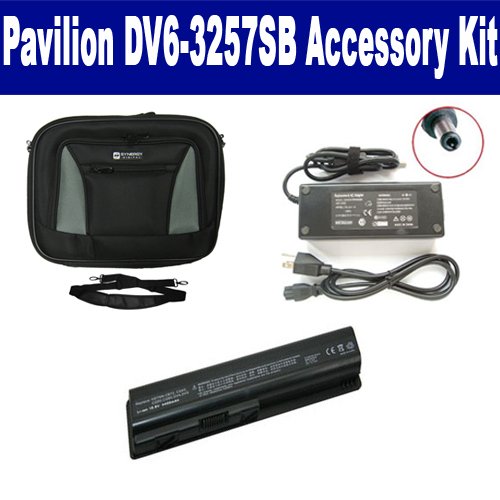 HP Pavilion DV6-3257SB Laptop Accessory Kit includes the following items: 1) SDB-3330 Laptop Battery - Lithium-Ion - Ultra High Capacity Rechargeable (6 Cell - 4400 mAh - 49wh - 10.8 Volt) Replacement for HP DV4 Laptop Battery 2) SDA-3509 Laptop Adapter (19 Volt, 6.3 Amp, 120 Watt) 3) SDC-34 Laptop 16" Black Case Soft Inner Material With Extra Pocket