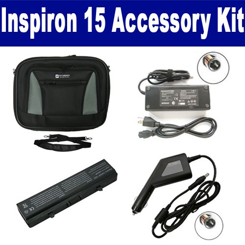 Dell Inspiron 15 Laptop Accessory Kit includes the following items: 1) SDB-3313 Laptop Battery - Lithium-Ion - Ultra High Capacity Rechargeable (3 Cell - 2200 mAh - 24wh - 11.1 Volt) Replacement for Dell 1525 Laptop Battery 2) SDA-3516 Laptop Adapter (19.5 Volt, 3.34 Amp, 65 Watt) 3) SDA-3566 Laptop DC Adapter / Car Charger (19.5 Volt, 3.34 Amp, 65 Watt) 4) SDC-33 Laptop 15" Black Case Soft Inner Material With Extra Pocket