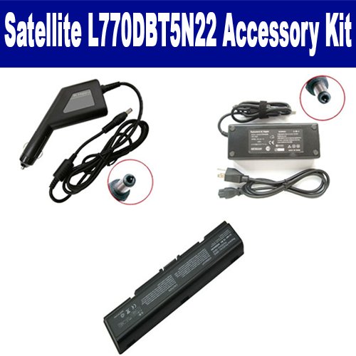 Toshiba Satellite L770DBT5N22 Laptop Accessory Kit includes the following items: 1) SDB-3351 Laptop Battery - Lithium-Ion - Ultra High Capacity Rechargeable (6 Cell - 4400 mAh - 49wh - 10.8 Volt) Replacement for Toshiba 3534 Laptop Battery 2) SDA-3506 Laptop Adapter (19 Volt, 3.42 Amp, 65 Watt) 3) SDA-3556 Laptop DC Adapter / Car Charger (19 Volt, 3.42 Amp, 65 Watt)