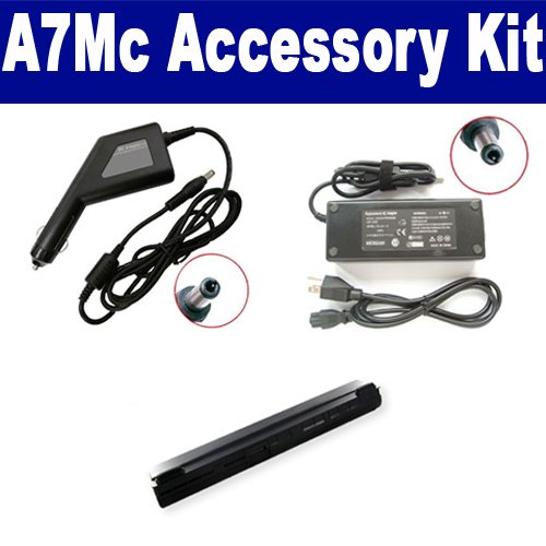 Asus A7Mc Laptop Accessory Kit includes the following items: 1) Asus A42-A3 Laptop Battery - High-Capacity (4400mAh 14.8V Lithium-Ion) Replacement For Asus A42-A3 Laptop Battery 2) SDA-3506 Laptop Adapter (19 Volt, 3.42 Amp, 65 Watt) 3) SDA-3556 Laptop DC Adapter / Car Charger (19 Volt, 3.42 Amp, 65 Watt)