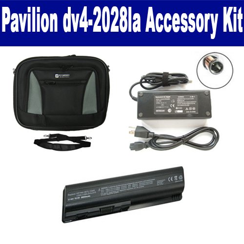 HP Pavilion dv4-2028la Laptop Accessory Kit includes the following items: 1) SDC-32 Laptop 14" Black Case Soft Inner Material With Extra Pocket 2) SDB-3331 Laptop Battery - Lithium-Ion - Ultra High Capacity Rechargeable (12 Cell - 8800 mAh - 98wh - 10.8 Volt) Replacement for HP DV4H Laptop Battery 3) SDA-3515 Laptop Adapter (19 Volt, 4.74 Amp, 90 Watt)
