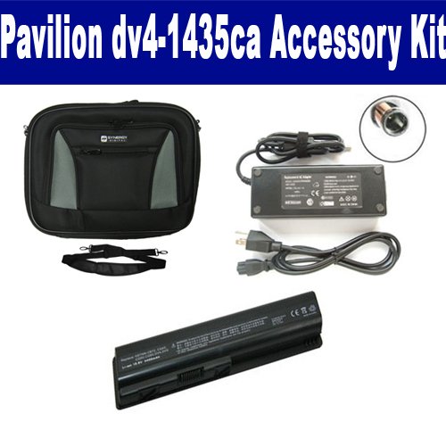 HP Pavilion dv4-1435ca Laptop Accessory Kit includes the following items: 1) SDC-32 Laptop 14" Black Case Soft Inner Material With Extra Pocket 2) SDB-3330 Laptop Battery - Lithium-Ion - Ultra High Capacity Rechargeable (6 Cell - 4400 mAh - 49wh - 10.8 Volt) Replacement for HP DV4 Laptop Battery 3) SDA-3515 Laptop Adapter (19 Volt, 4.74 Amp, 90 Watt)