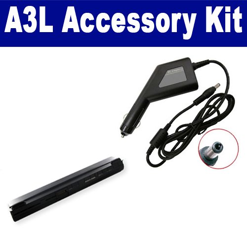Asus A3L Laptop Accessory Kit includes the following items: 1) Asus A42-A3 Laptop Battery - High-Capacity (4400mAh 14.8V Lithium-Ion) Replacement For Asus A42-A3 Laptop Battery 2) SDA-3556 Laptop DC Adapter / Car Charger (19 Volt, 3.42 Amp, 65 Watt)