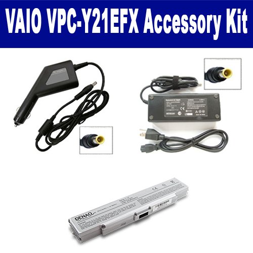 Sony VAIO VPC-Y21EFX Laptop Accessory Kit includes the following items: 1) VGP-BPS2A/S Laptop Battery - High-Capacity (5200mAh 6-Cell Lithium-Ion) Replacement For Sony VGP-BPS2A/S Rechargeable Laptop Battery 2) SDA-3511 Laptop Adapter (16 Volt, 3.75 Amp, 60 Watt) 3) SDA-3561 Laptop DC Adapter / Car Charger (16 Volt, 3.75 Amp, 60 Watt)