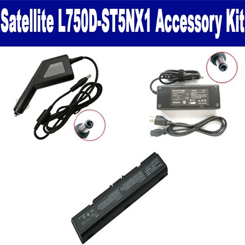 Toshiba Satellite L750D-ST5NX1 Laptop Accessory Kit includes the following items: 1) SDB-3351 Laptop Battery - Lithium-Ion - Ultra High Capacity Rechargeable (6 Cell - 4400 mAh - 49wh - 10.8 Volt) Replacement for Toshiba 3534 Laptop Battery 2) SDA-3506 Laptop Adapter (19 Volt, 3.42 Amp, 65 Watt) 3) SDA-3556 Laptop DC Adapter / Car Charger (19 Volt, 3.42 Amp, 65 Watt)