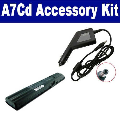 Asus A7Cd Laptop Accessory Kit includes the following items: 1) A4270-NA51B1100 Laptop Battery (4800mAh 8-Cell Lithium-Ion) - Replacement For Asus A4270-NA51B1100 Rechargeable Laptop Battery 2) SDA-3556 Laptop DC Adapter / Car Charger (19 Volt, 3.42 Amp, 65 Watt)