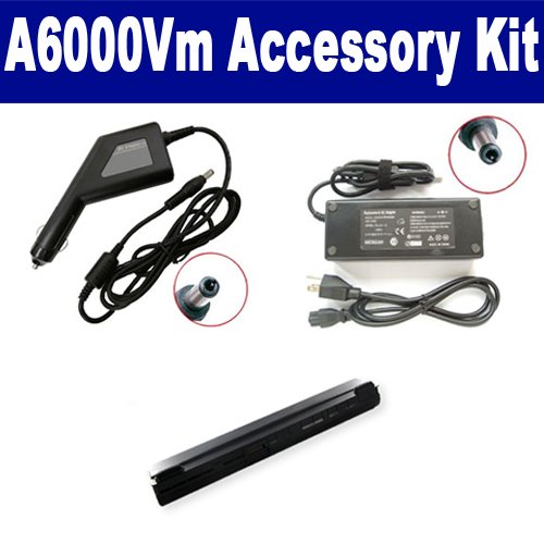 Asus A6000Vm Laptop Accessory Kit includes the following items: 1) Asus A42-A3 Laptop Battery - High-Capacity (4400mAh 14.8V Lithium-Ion) Replacement For Asus A42-A3 Laptop Battery 2) SDA-3506 Laptop Adapter (19 Volt, 3.42 Amp, 65 Watt) 3) SDA-3556 Laptop DC Adapter / Car Charger (19 Volt, 3.42 Amp, 65 Watt)