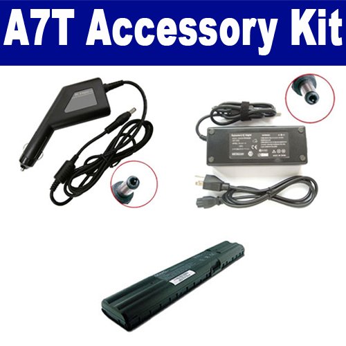 Asus A7T Laptop Accessory Kit includes the following items: 1) A4270-NA51B1100 Laptop Battery (4800mAh 8-Cell Lithium-Ion) - Replacement For Asus A4270-NA51B1100 Rechargeable Laptop Battery 2) SDA-3506 Laptop Adapter (19 Volt, 3.42 Amp, 65 Watt) 3) SDA-3556 Laptop DC Adapter / Car Charger (19 Volt, 3.42 Amp, 65 Watt)