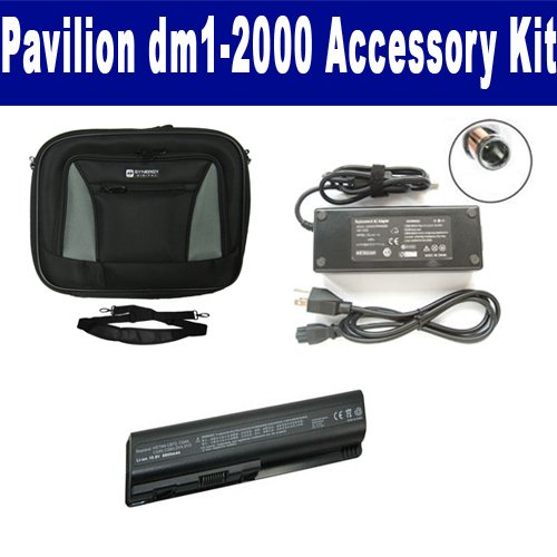 HP Pavilion dm1-2000 Laptop Accessory Kit includes the following items: 1) SDB-3331 Laptop Battery - Lithium-Ion - Ultra High Capacity Rechargeable (12 Cell - 8800 mAh - 98wh - 10.8 Volt) Replacement for HP DV4H Laptop Battery 2) SDC-31 Laptop 10" Black Case Soft Inner Material With Extra Pocket 3) SDA-3516 Laptop Adapter (19.5 Volt, 3.34 Amp, 65 Watt)