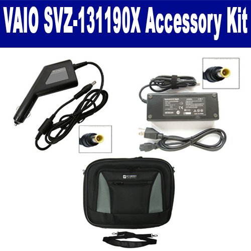 Sony VAIO SVZ-131190X Laptop Accessory Kit includes the following items: 1) SDA-3512 Laptop Adapter (19.5 Volt, 4.7 Amp, 90 Watt) 2) SDA-3562 Laptop DC Adapter / Car Charger (19.5 Volt, 4.7 Amp, 90 Watt) 3) SDC-32 Laptop 14" Black Case Soft Inner Material With Extra Pocket