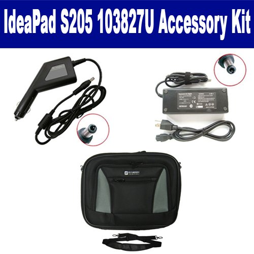 Lenovo IdeaPad S205 103827U Laptop Accessory Kit includes the following items: 1) SDC-32 Laptop 14" Black Case Soft Inner Material With Extra Pocket 2) SDA-3556 Laptop DC Adapter / Car Charger (19 Volt, 3.42 Amp, 65 Watt) 3) SDA-3506 Laptop Adapter (19 Volt, 3.42 Amp, 65 Watt)
