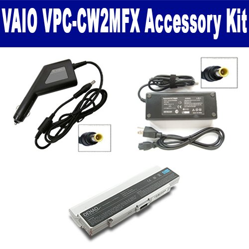 Sony VAIO VPC-CW2MFX Laptop Accessory Kit includes the following items: 1) VGP-BPL2C/S Laptop Battery - High-Capacity (8800mAh 12-Cell Lithium-Ion) Replacement For Sony VGP-BPL2C/S Rechargeable Laptop Battery 2) SDA-3512 Laptop Adapter (19.5 Volt, 4.7 Amp, 90 Watt) 3) SDA-3562 Laptop DC Adapter / Car Charger (19.5 Volt, 4.7 Amp, 90 Watt)
