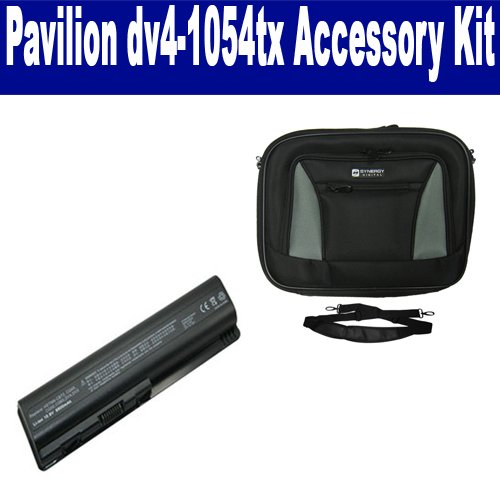 HP Pavilion dv4-1054tx Laptop Accessory Kit includes the following items: 1) SDC-32 Laptop 14" Black Case Soft Inner Material With Extra Pocket 2) SDB-3331 Laptop Battery - Lithium-Ion - Ultra High Capacity Rechargeable (12 Cell - 8800 mAh - 98wh - 10.8 Volt) Replacement for HP DV4H Laptop Battery