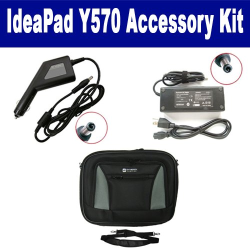 Lenovo IdeaPad Y570 Laptop Accessory Kit includes the following items: 1) SDC-34 Laptop 16" Black Case Soft Inner Material With Extra Pocket 2) SDA-3556 Laptop DC Adapter / Car Charger (19 Volt, 3.42 Amp, 65 Watt) 3) SDA-3506 Laptop Adapter (19 Volt, 3.42 Amp, 65 Watt)
