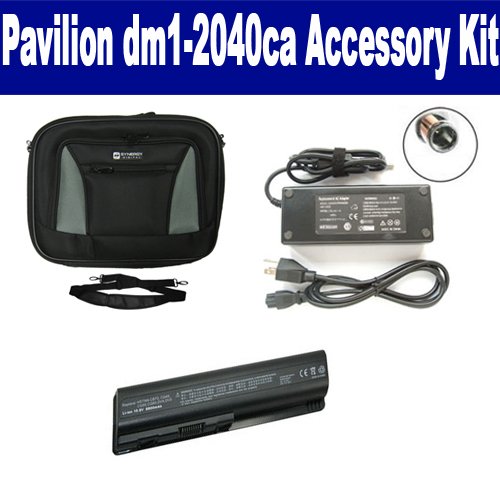 HP Pavilion dm1-2040ca Laptop Accessory Kit includes the following items: 1) SDB-3331 Laptop Battery - Lithium-Ion - Ultra High Capacity Rechargeable (12 Cell - 8800 mAh - 98wh - 10.8 Volt) Replacement for HP DV4H Laptop Battery 2) SDC-31 Laptop 10" Black Case Soft Inner Material With Extra Pocket 3) SDA-3516 Laptop Adapter (19.5 Volt, 3.34 Amp, 65 Watt)