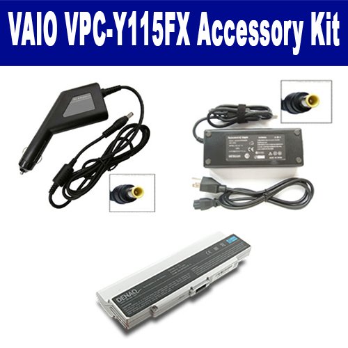 Sony VAIO VPC-Y115FX Laptop Accessory Kit includes the following items: 1) VGP-BPL2C/S Laptop Battery - High-Capacity (8800mAh 12-Cell Lithium-Ion) Replacement For Sony VGP-BPL2C/S Rechargeable Laptop Battery 2) SDA-3512 Laptop Adapter (19.5 Volt, 4.7 Amp, 90 Watt) 3) SDA-3562 Laptop DC Adapter / Car Charger (19.5 Volt, 4.7 Amp, 90 Watt)