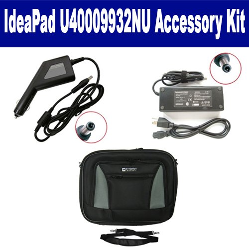 Lenovo IdeaPad U40009932NU Laptop Accessory Kit includes the following items: 1) SDC-33 Laptop 15" Black Case Soft Inner Material With Extra Pocket 2) SDA-3556 Laptop DC Adapter / Car Charger (19 Volt, 3.42 Amp, 65 Watt) 3) SDA-3506 Laptop Adapter (19 Volt, 3.42 Amp, 65 Watt)