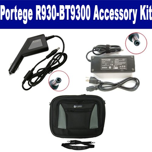 Toshiba Portege R930-BT9300 Laptop Accessory Kit includes the following items: 1) SDA-3508 Laptop Adapter (19 Volt, 4.74 Amp, 90 Watt) 2) SDA-3558 Laptop DC Adapter / Car Charger (19 Volt, 4.74 Amp, 90 Watt) 3) SDC-32 Laptop 14" Black Case Soft Inner Material With Extra Pocket