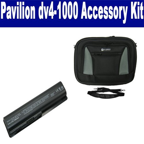 HP Pavilion dv4-1000 Laptop Accessory Kit includes the following items: 1) SDC-32 Laptop 14" Black Case Soft Inner Material With Extra Pocket 2) SDB-3331 Laptop Battery - Lithium-Ion - Ultra High Capacity Rechargeable (12 Cell - 8800 mAh - 98wh - 10.8 Volt) Replacement for HP DV4H Laptop Battery