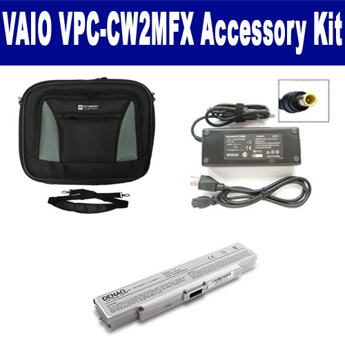 Sony VAIO VPC-CW2MFX Laptop Accessory Kit includes the following items: 1) VGP-BPS2A/S Laptop Battery - High-Capacity (5200mAh 6-Cell Lithium-Ion) Replacement For Sony VGP-BPS2A/S Rechargeable Laptop Battery 2) SDA-3511 Laptop Adapter (16 Volt, 3.75 Amp, 60 Watt) 3) SDC-32 Laptop 14" Black Case Soft Inner Material With Extra Pocket