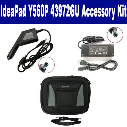 Lenovo IdeaPad Y560P 43972GU Laptop Accessory Kit includes the following items: 1) SDC-34 Laptop 16" Black Case Soft Inner Material With Extra Pocket 2) SDA-3556 Laptop DC Adapter / Car Charger (19 Volt, 3.42 Amp, 65 Watt) 3) SDA-3506 Laptop Adapter (19 Volt, 3.42 Amp, 65 Watt)