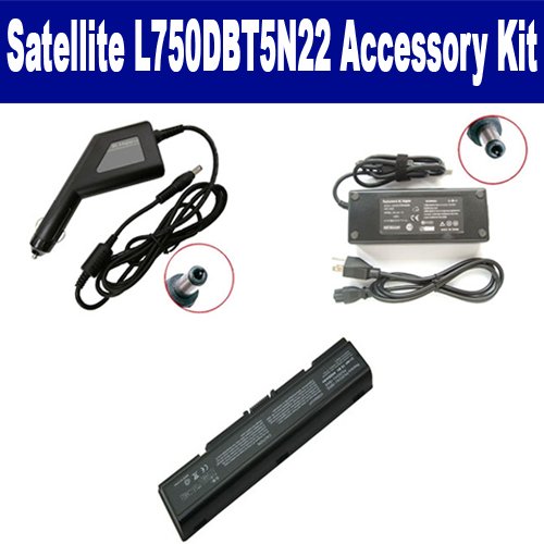Toshiba Satellite L750DBT5N22 Laptop Accessory Kit includes the following items: 1) SDB-3351 Laptop Battery - Lithium-Ion - Ultra High Capacity Rechargeable (6 Cell - 4400 mAh - 49wh - 10.8 Volt) Replacement for Toshiba 3534 Laptop Battery 2) SDA-3506 Laptop Adapter (19 Volt, 3.42 Amp, 65 Watt) 3) SDA-3556 Laptop DC Adapter / Car Charger (19 Volt, 3.42 Amp, 65 Watt)