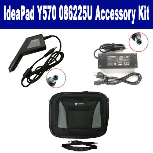 Lenovo IdeaPad Y570 086225U Laptop Accessory Kit includes the following items: 1) SDC-34 Laptop 16" Black Case Soft Inner Material With Extra Pocket 2) SDA-3556 Laptop DC Adapter / Car Charger (19 Volt, 3.42 Amp, 65 Watt) 3) SDA-3506 Laptop Adapter (19 Volt, 3.42 Amp, 65 Watt)