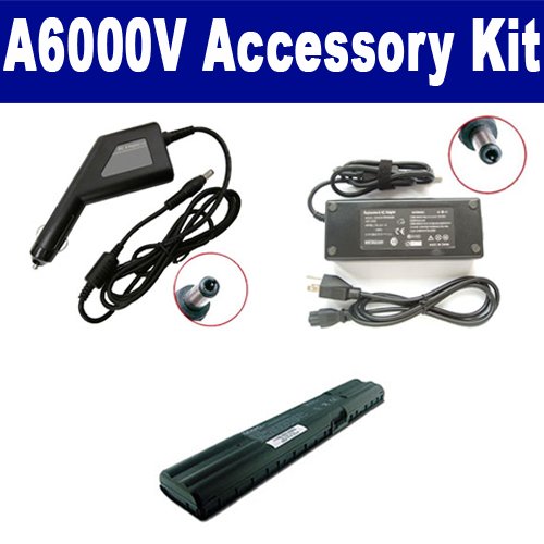 Asus A6000V Laptop Accessory Kit includes the following items: 1) A4270-NA51B1100 Laptop Battery (4800mAh 8-Cell Lithium-Ion) - Replacement For Asus A4270-NA51B1100 Rechargeable Laptop Battery 2) SDA-3506 Laptop Adapter (19 Volt, 3.42 Amp, 65 Watt) 3) SDA-3556 Laptop DC Adapter / Car Charger (19 Volt, 3.42 Amp, 65 Watt)