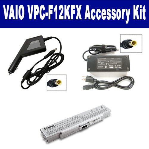 Sony VAIO VPC-F12KFX Laptop Accessory Kit includes the following items: 1) VGP-BPS2A/S Laptop Battery - High-Capacity (5200mAh 6-Cell Lithium-Ion) Replacement For Sony VGP-BPS2A/S Rechargeable Laptop Battery 2) SDA-3511 Laptop Adapter (16 Volt, 3.75 Amp, 60 Watt) 3) SDA-3561 Laptop DC Adapter / Car Charger (16 Volt, 3.75 Amp, 60 Watt)