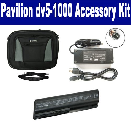 HP Pavilion dv5-1000 Laptop Accessory Kit includes the following items: 1) SDC-32 Laptop 14" Black Case Soft Inner Material With Extra Pocket 2) SDB-3331 Laptop Battery - Lithium-Ion - Ultra High Capacity Rechargeable (12 Cell - 8800 mAh - 98wh - 10.8 Volt) Replacement for HP DV4H Laptop Battery 3) SDA-3515 Laptop Adapter (19 Volt, 4.74 Amp, 90 Watt)