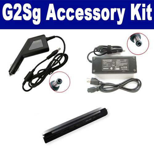 Asus G2Sg Laptop Accessory Kit includes the following items: 1) Asus A42-A3 Laptop Battery - High-Capacity (4400mAh 14.8V Lithium-Ion) Replacement For Asus A42-A3 Laptop Battery 2) SDA-3506 Laptop Adapter (19 Volt, 3.42 Amp, 65 Watt) 3) SDA-3556 Laptop DC Adapter / Car Charger (19 Volt, 3.42 Amp, 65 Watt)
