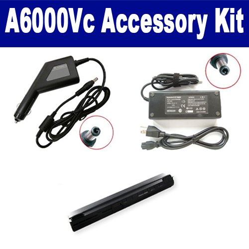 Asus A6000Vc Laptop Accessory Kit includes the following items: 1) Asus A42-A3 Laptop Battery - High-Capacity (4400mAh 14.8V Lithium-Ion) Replacement For Asus A42-A3 Laptop Battery 2) SDA-3506 Laptop Adapter (19 Volt, 3.42 Amp, 65 Watt) 3) SDA-3556 Laptop DC Adapter / Car Charger (19 Volt, 3.42 Amp, 65 Watt)