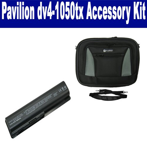 HP Pavilion dv4-1050tx Laptop Accessory Kit includes the following items: 1) SDC-32 Laptop 14" Black Case Soft Inner Material With Extra Pocket 2) SDB-3331 Laptop Battery - Lithium-Ion - Ultra High Capacity Rechargeable (12 Cell - 8800 mAh - 98wh - 10.8 Volt) Replacement for HP DV4H Laptop Battery