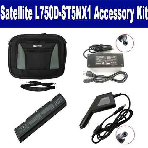 Toshiba Satellite L750D-ST5NX1 Laptop Accessory Kit includes the following items: 1) SDB-3351 Laptop Battery - Lithium-Ion - Ultra High Capacity Rechargeable (6 Cell - 4400 mAh - 49wh - 10.8 Volt) Replacement for Toshiba 3534 Laptop Battery 2) SDA-3506 Laptop Adapter (19 Volt, 3.42 Amp, 65 Watt) 3) SDA-3556 Laptop DC Adapter / Car Charger (19 Volt, 3.42 Amp, 65 Watt) 4) SDC-34 Laptop 16" Black Case Soft Inner Material With Extra Pocket