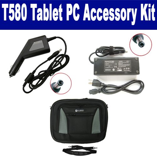 Fujitsu T580 Tablet PC Laptop Accessory Kit includes the following items: 1) SDA-3508 Laptop Adapter (19 Volt, 4.74 Amp, 90 Watt) 2) SDA-3558 Laptop DC Adapter / Car Charger (19 Volt, 4.74 Amp, 90 Watt) 3) SDC-31 Laptop 10" Black Case Soft Inner Material With Extra Pocket