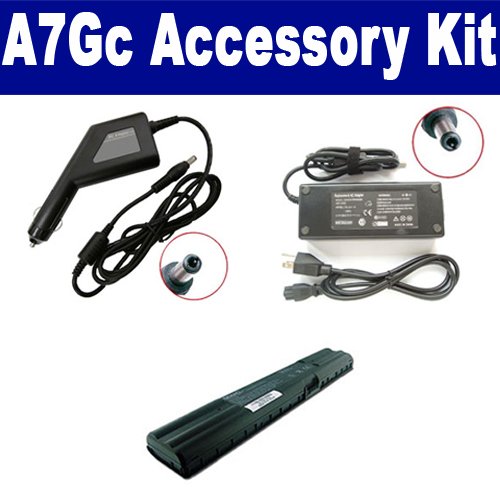Asus A7Gc Laptop Accessory Kit includes the following items: 1) A4270-NA51B1100 Laptop Battery (4800mAh 8-Cell Lithium-Ion) - Replacement For Asus A4270-NA51B1100 Rechargeable Laptop Battery 2) SDA-3506 Laptop Adapter (19 Volt, 3.42 Amp, 65 Watt) 3) SDA-3556 Laptop DC Adapter / Car Charger (19 Volt, 3.42 Amp, 65 Watt)