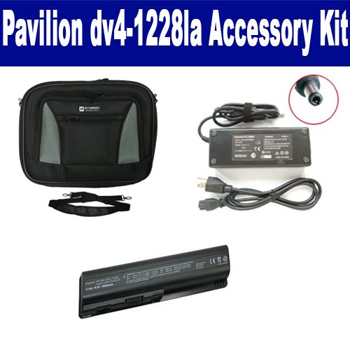 HP Pavilion dv4-1228la Laptop Accessory Kit includes the following items: 1) SDC-32 Laptop 14" Black Case Soft Inner Material With Extra Pocket 2) SDB-3331 Laptop Battery - Lithium-Ion - Ultra High Capacity Rechargeable (12 Cell - 8800 mAh - 98wh - 10.8 Volt) Replacement for HP DV4H Laptop Battery 3) SDA-3515 Laptop Adapter (19 Volt, 4.74 Amp, 90 Watt)