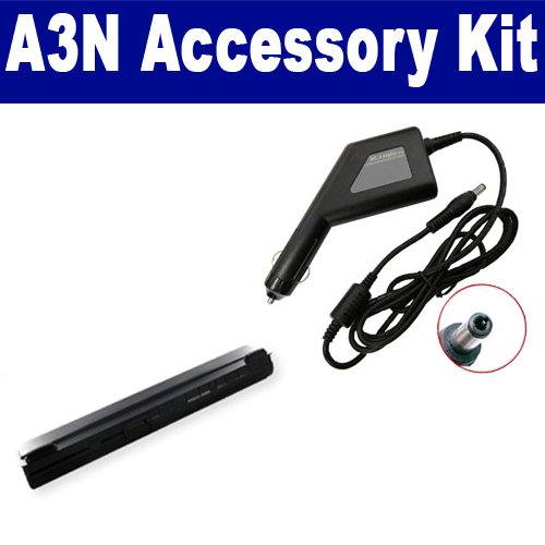 Asus A3N Laptop Accessory Kit includes the following items: 1) Asus A42-A3 Laptop Battery - High-Capacity (4400mAh 14.8V Lithium-Ion) Replacement For Asus A42-A3 Laptop Battery 2) SDA-3556 Laptop DC Adapter / Car Charger (19 Volt, 3.42 Amp, 65 Watt)
