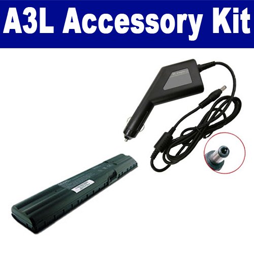 Asus A3L Laptop Accessory Kit includes the following items: 1) A4270-NA51B1100 Laptop Battery (4800mAh 8-Cell Lithium-Ion) - Replacement For Asus A4270-NA51B1100 Rechargeable Laptop Battery 2) SDA-3556 Laptop DC Adapter / Car Charger (19 Volt, 3.42 Amp, 65 Watt)