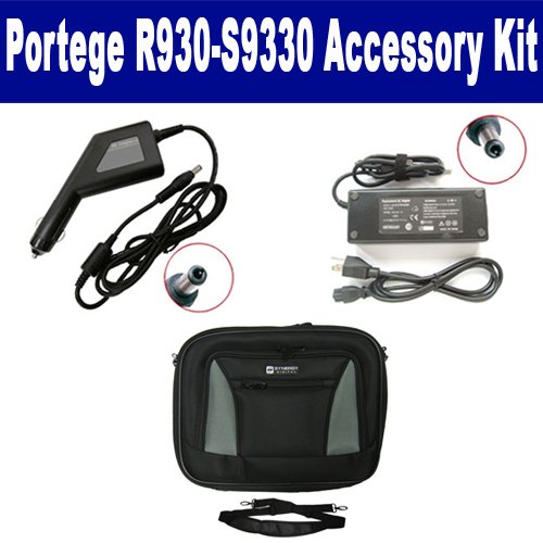 Toshiba Portege R930-S9330 Laptop Accessory Kit includes the following items: 1) SDA-3506 Laptop Adapter (19 Volt, 3.42 Amp, 65 Watt) 2) SDA-3556 Laptop DC Adapter / Car Charger (19 Volt, 3.42 Amp, 65 Watt) 3) SDC-32 Laptop 14" Black Case Soft Inner Material With Extra Pocket
