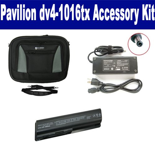 HP Pavilion dv4-1016tx Laptop Accessory Kit includes the following items: 1) SDC-32 Laptop 14" Black Case Soft Inner Material With Extra Pocket 2) SDB-3331 Laptop Battery - Lithium-Ion - Ultra High Capacity Rechargeable (12 Cell - 8800 mAh - 98wh - 10.8 Volt) Replacement for HP DV4H Laptop Battery 3) SDA-3515 Laptop Adapter (19 Volt, 4.74 Amp, 90 Watt)