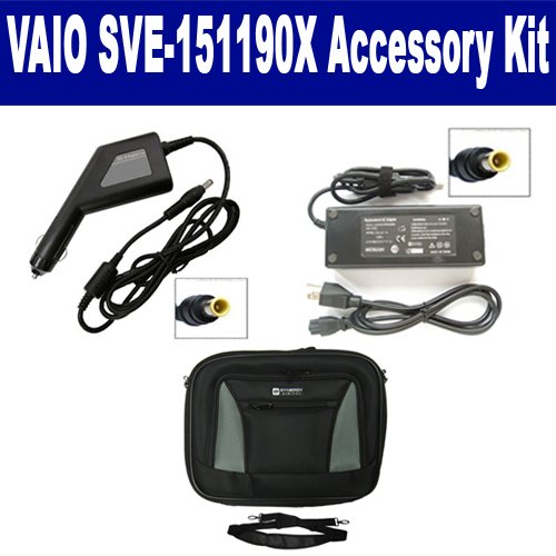 Sony VAIO SVE-151190X Laptop Accessory Kit includes the following items: 1) SDA-3512 Laptop Adapter (19.5 Volt, 4.7 Amp, 90 Watt) 2) SDA-3562 Laptop DC Adapter / Car Charger (19.5 Volt, 4.7 Amp, 90 Watt) 3) SDC-34 Laptop 16" Black Case Soft Inner Material With Extra Pocket